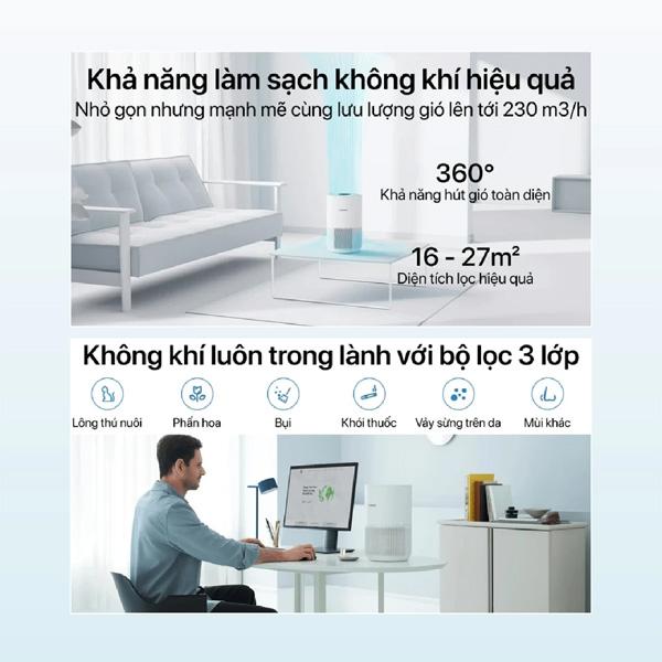 - Lọc 99,97% bụi mịn PM2.5, khử mùi hiệu quả