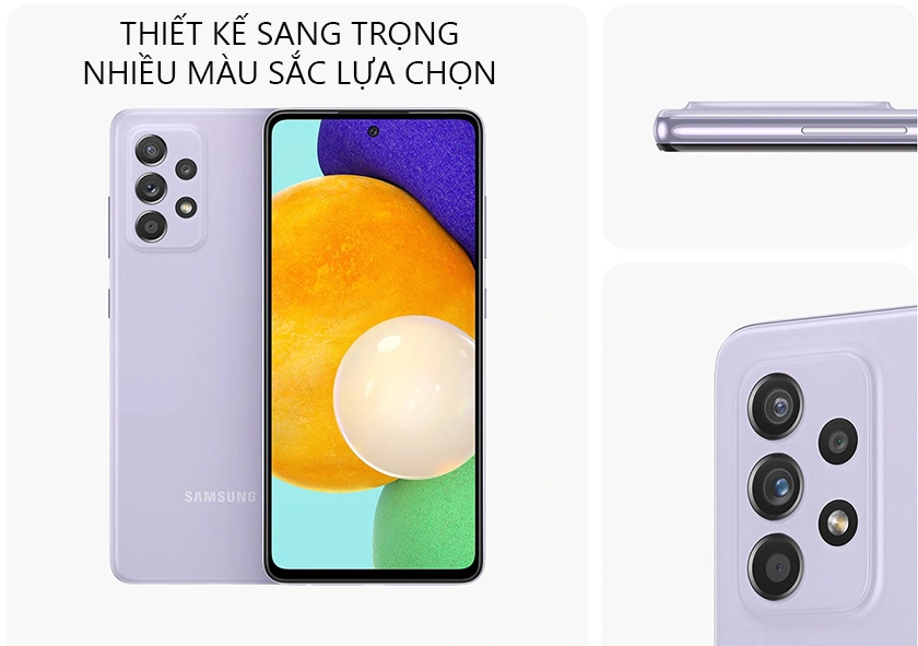 Samsung Galaxy A52 có thiết kế nguyên khối với độ mỏng ấn tượng cho cảm giác cầm tay thoải mái. Các góc cạnh cũng được bo cong nhẹ nhàng tạo nên sự mềm mại cho smartphone, tạo nên tổng thể hài hòa và thanh lịch.