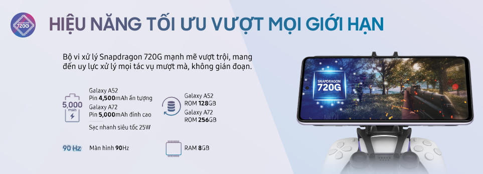 Galaxy A52 được trang bị con chip Exynos 9611 được sản xuất trên quy trình 10nm giúp tiết kiệm điện năng tốt hơn đồng thời mang đến tốc độ xử lý nhanh chóng cho smartphone.