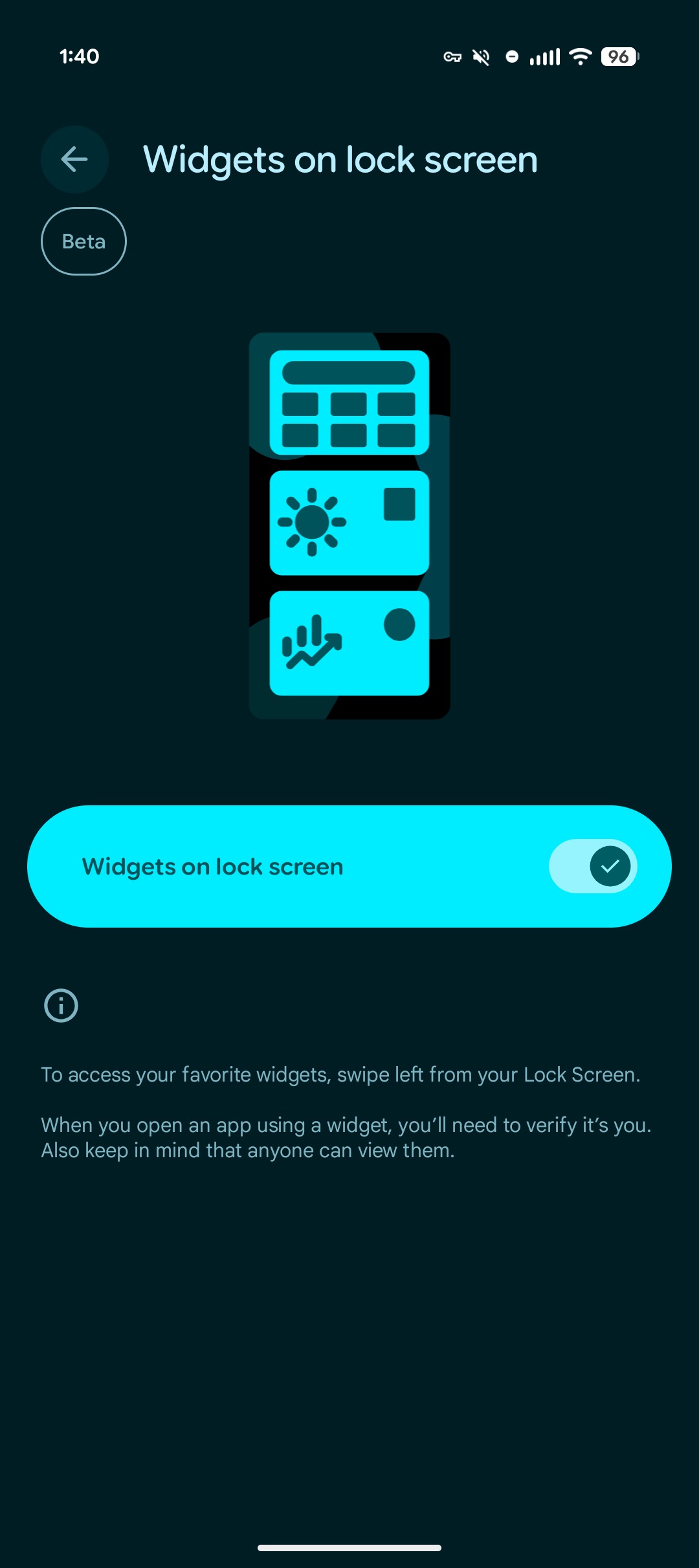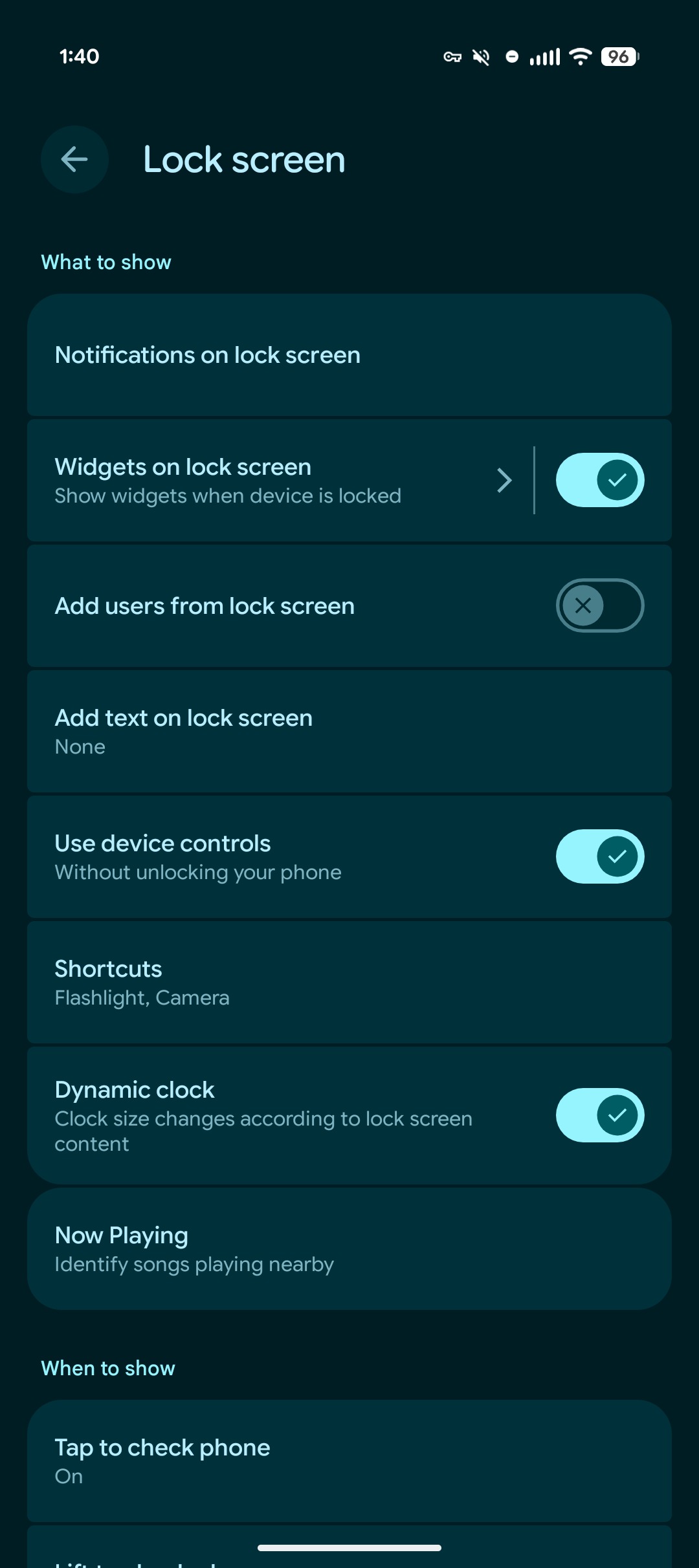 - Tiện ích trên màn hình khóa (Lockscreen Widgets) đã mất tùy chọn “Khi nào tự động hiển thị”, khiến người dùng không thể cài đặt chế độ hiển thị theo trạng thái sạc hay hướng máy.