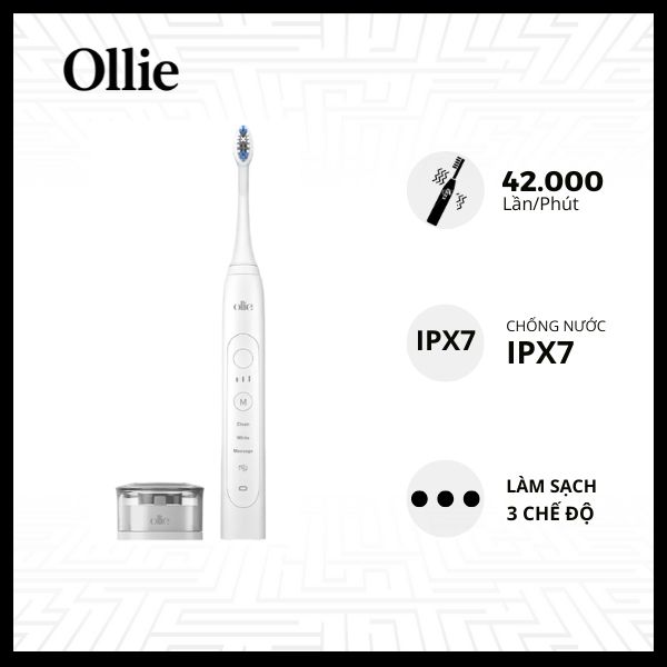 Bàn chải điện OLLIE là giải pháp chăm sóc răng miệng thông minh, kết hợp thiết kế hiện đại với công nghệ rung tần số cao giúp loại bỏ mảng bám hiệu quả, làm sạch sâu từng kẽ răng mà vẫn dịu nhẹ với nướu. Thân máy chống nước chuẩn IPX7, pin sạc dùng lâu, đầu bàn chải thay thế dễ dàng. Nhiều chế độ chải phù hợp cho từng nhu cầu, từ làm trắng đến chăm sóc răng nhạy cảm.