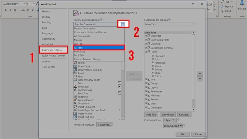 - Bước 1: Chuyển sang tab Draw (Vẽ) trên thanh công cụ. Nếu chưa thấy, bạn có thể bật tính năng này trong Options.