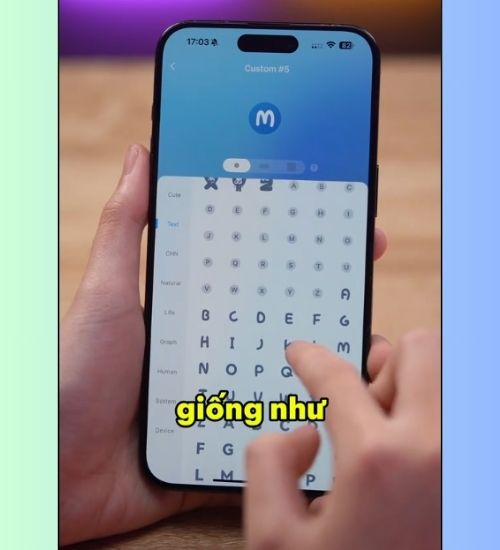 Bước 3: Chọn vào Custom 1, trong phần Icon, bạn chọn chữ cái đầu tiên của tên bạn (ví dụ A, N, L…). Ở mục icon phụ bên dưới, bạn cũng chọn lại đúng chữ đó.