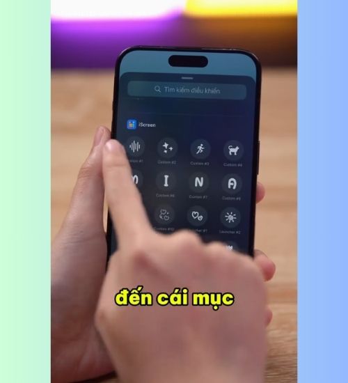 Bước 4: Vuốt từ góc phải màn hình để mở Control Center. Nhấn giữ và chọn “Thêm mục điều khiển”. Kéo xuống mục iScreen, sau đó thêm đủ 4 mục Custom bạn đã tạo.