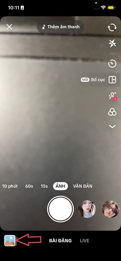 Bước 1: Mở ứng dụng TikTok trên điện thoại, tại màn hình chính nhấn vào biểu tượng dấu “+” ở giữa phía dưới.