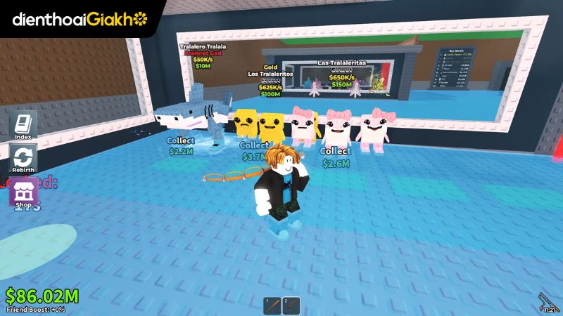 Khi sự kiện kích hoạt và cách có cần câu trong Game Steal A Brainrot đã xong, bạn chỉ cần: