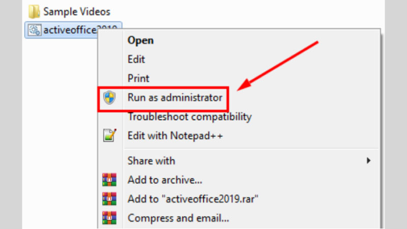 Bước 2: Sau khi bạn tiến hành giải nén file, nhấn chuột phải vào thư mục có tên “activeoffice2019”. Nhấn vào “Run as administrator”.