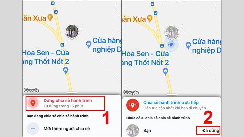 Lưu ý: Bạn có thể hủy chia sẻ hành trình bất kỳ lúc nào bằng cách nhấn vào tin nhắn đang chia sẻ hành trình và chọn “Dừng chia sẻ hành trình”.