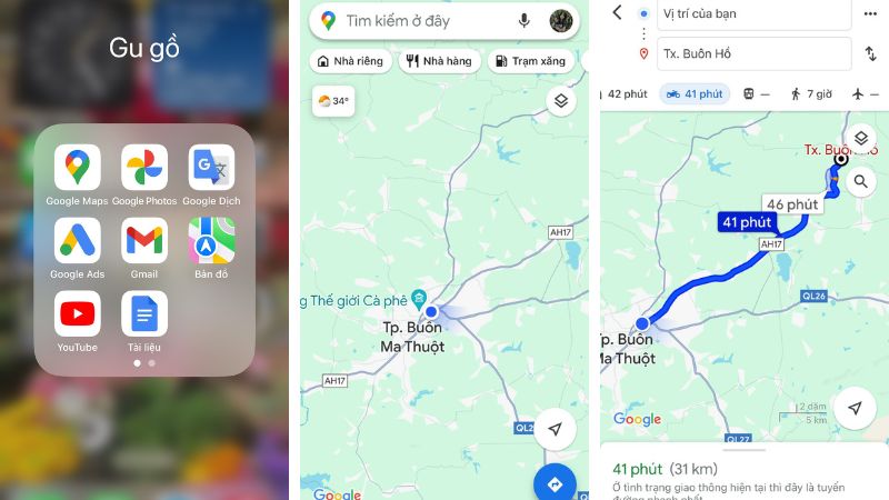 Để theo dõi tình hình giao thông và lựa chọn chế độ bản đồ phù hợp trên Google Map, bạn có thể thực hiện các thao tác sau: