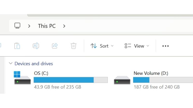 - Xem thông tin ổ đĩa C: Trong File Explorer, chọn “This PC” hoặc “My Computer” từ thanh bên trái. Tiếp theo, bạn sẽ nhìn thấy danh sách các ổ đĩa, trong đó thường có ổ đĩa C được ghi là “Local Disk (C:).”