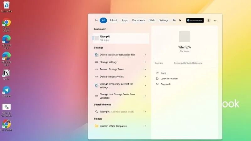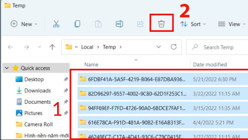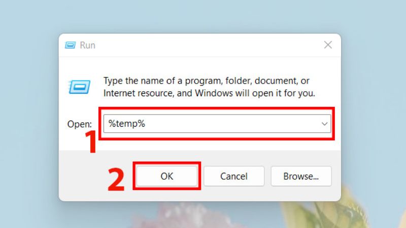 - Bước 1: Nhấn tổ hợp phím Windows + R, sau đó gõ “%temp%” và nhấn Enter.