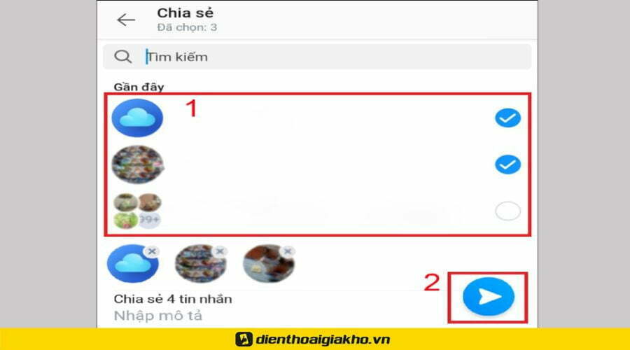 - Bước 2: Sau khi đã chọn những tin nhắn cần gửi bạn chỉ cần tick chọn những người cần muốn gửi -> Nhân Chia sẻ là hoàn tất.