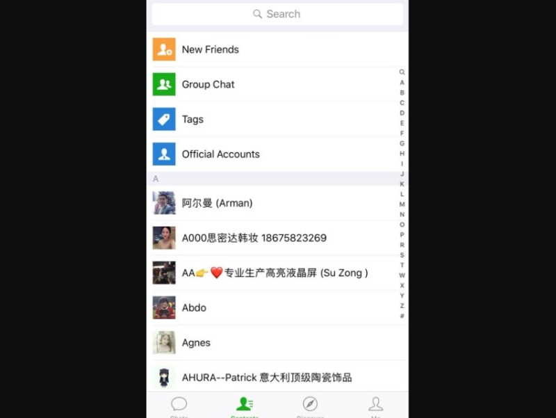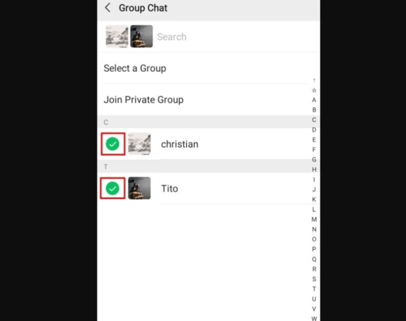 - Bước 4: Chọn liên hệ mới từ danh sách. Ở bước này, Wechat sẽ hiển thị một danh sách các liên hệ trong danh bạ. Hãy chọn các liên hệ mà mình muốn thêm vào nhóm bằng cách nhấn vào tên của họ, sau đó nhấn vào nút “OK”.