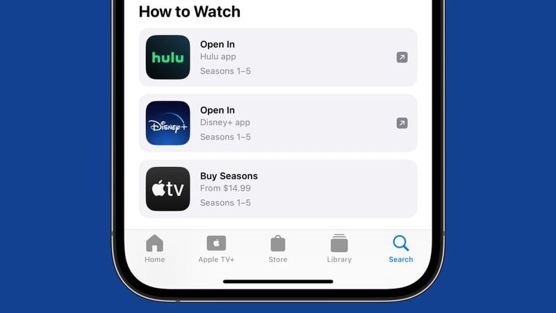 Phần Đồng hồ trong ứng dụng Apple TV, hiển thị nơi bạn có thể xem phim hoặc chương trình truyền hình, hiện có chế độ xem danh sách thay vì chế độ xem thẻ.