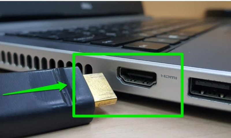 Bước 1: Nối một đầu dây HDMI với cổng kết nối HDMI trên laptop của bạn