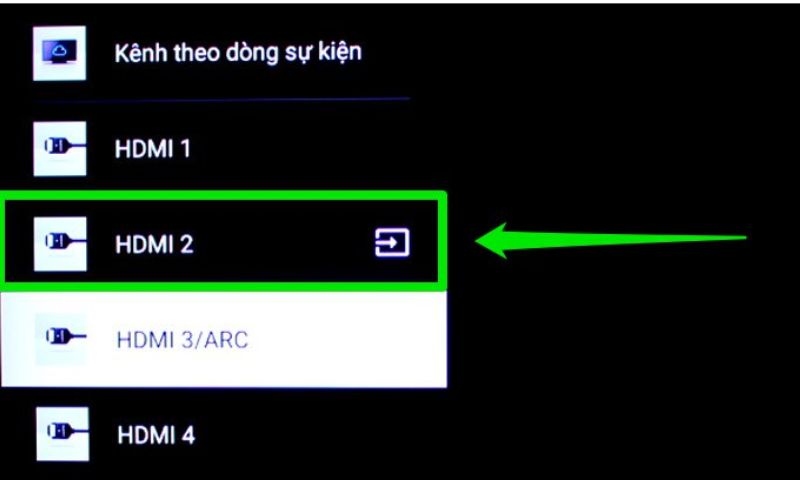 Bước 3: Trên tivi, bạn sử dụng remote để lựa chọn nguồn của tivi là cổng HDMI tương ứng mà bạn đã cắm trên tivi.