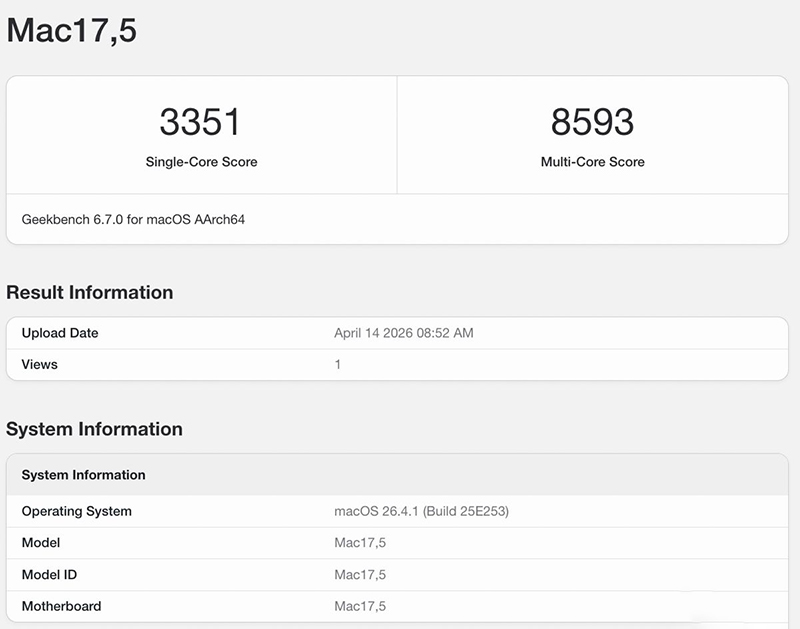 Kết quả Cinebench R26 ghi nhận 501 điểm đơn nhân và 1.458 điểm đa nhân khá ấn tượng với một thiết bị thuộc phân khúc mỏng nhẹ. Trên Geekbench 6, điểm số đạt 3.351 (đơn nhân) và 8.593 (đa nhân), thể hiện mức ổn định cao.