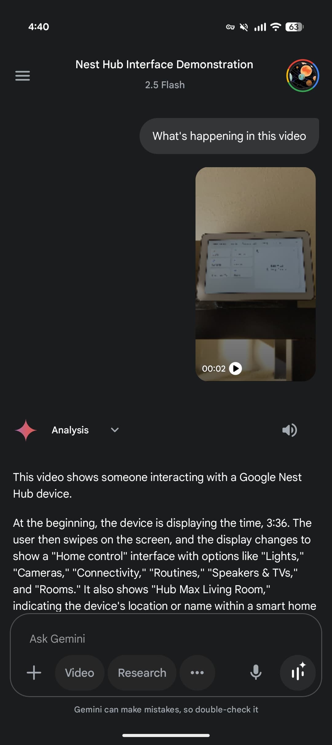 Trước đây, Gemini đã có thể xử lý văn bản, hình ảnh và tài liệu, nhưng việc hỗ trợ video cá nhân đánh dấu bước mở rộng quan trọng trong khả năng hiểu nội dung trực quan. Người dùng không chỉ có thể xem lại video ngay trong ứng dụng, mà còn đặt câu hỏi trực tiếp về nội dung trong clip – từ thông tin xuất hiện trên màn hình đến mô tả cảnh vật trong khung hình.