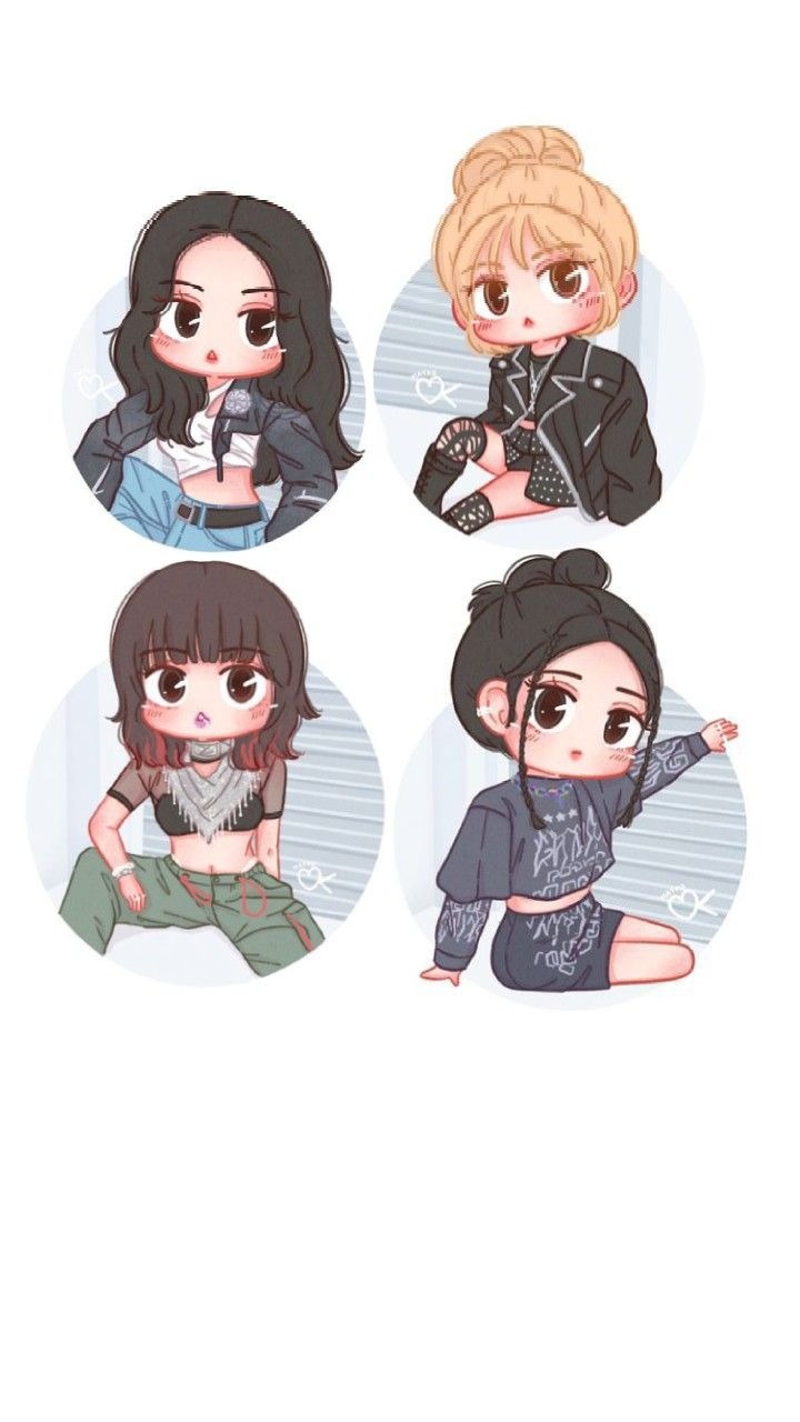 Fan Blackpink không thể bỏ qua những hình ảnh các thành viên Jennie, Lisa, Jisoo, Rosé được vẽ lại theo phong cách chibi – đáng yêu nhưng vẫn giữ được thần thái riêng.