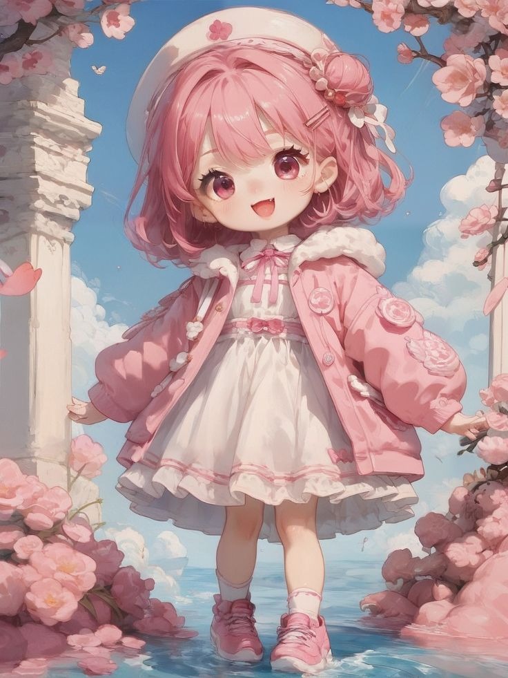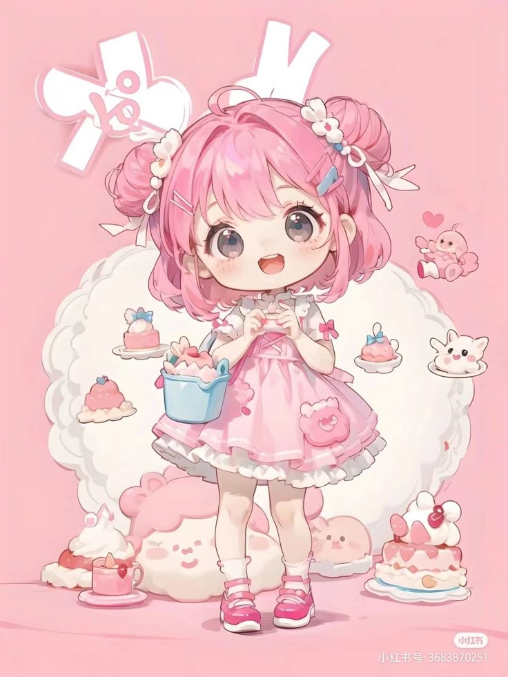 Hình vẽ chibi dễ thương màu hồng