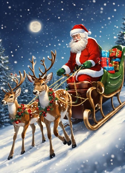 Nhiều hình ảnh ông già Noel cưỡi tuần lộc được đặt trong bối cảnh tuyết rơi, tạo nên không khí giáng sinh đầy lãng mạn. Những khung cảnh này thường rất đẹp, với ánh đèn lung linh và những ngôi nhà nhỏ xinh xắn.