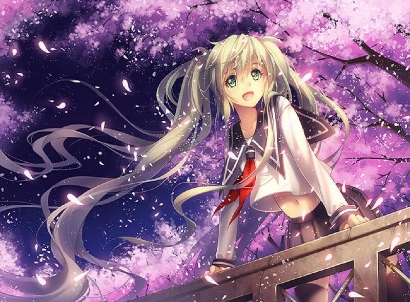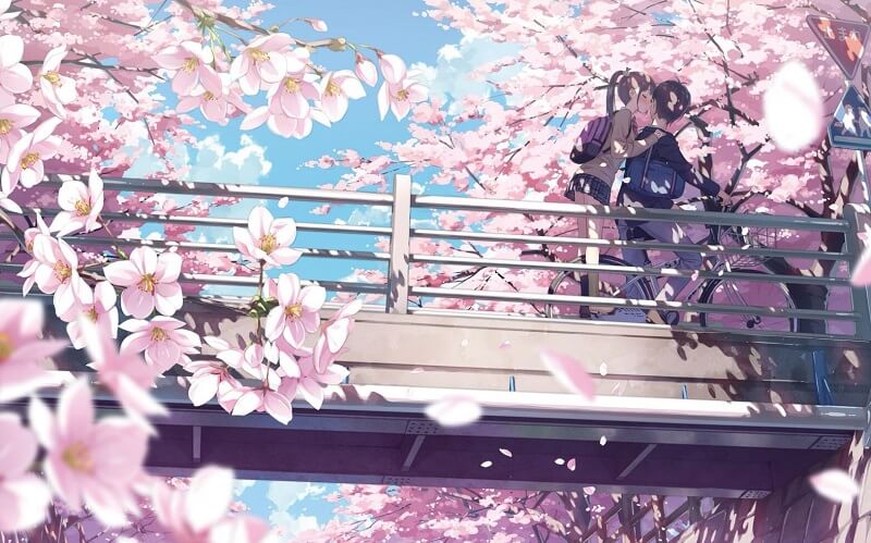 Hình nền theo phong cách Anime là sự kết hợp hài hòa của vẻ đẹp của hoa và nét vẽ đặc trưng Anime. Cánh hoa rơi tạo nên khung cảnh lãng mạn vô cùng đẹp mắt. Nhưng thay vì được thể hiện theo kiểu như thông thường thì được vẽ theo phong cách Anime.