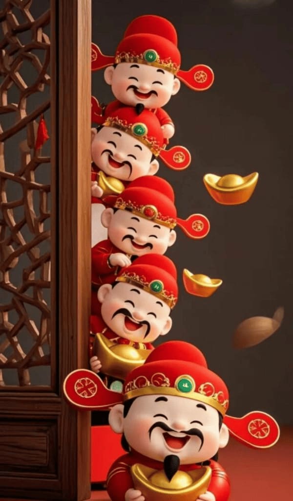 Màu đỏ tượng trưng hỷ sự, tài lộc; màu vàng tượng trưng phú quý. Các mẫu này phù hợp để đặt màn hình khóa, tạo không khí rộn ràng và tràn đầy hy vọng cho năm mới.