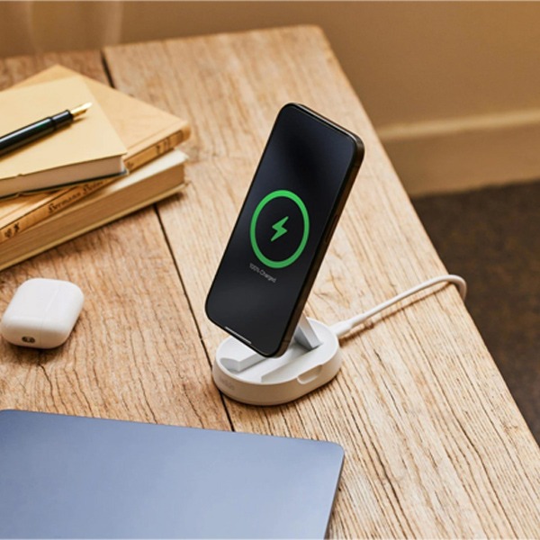 Đế sạc Belkin Magsafe BoostCharge Pro 2 in 1 mang đến giải pháp sạc tiện lợi cho cả iPhone và Apple Watch. Với công suất 15W, sản phẩm này cho phép sạc nhanh và đồng thời hai thiết bị. Thiết kế tinh tế và hiện đại không chỉ tiết kiệm không gian mà còn tạo điểm nhấn cho góc làm việc hoặc bàn trang điểm của bạn.