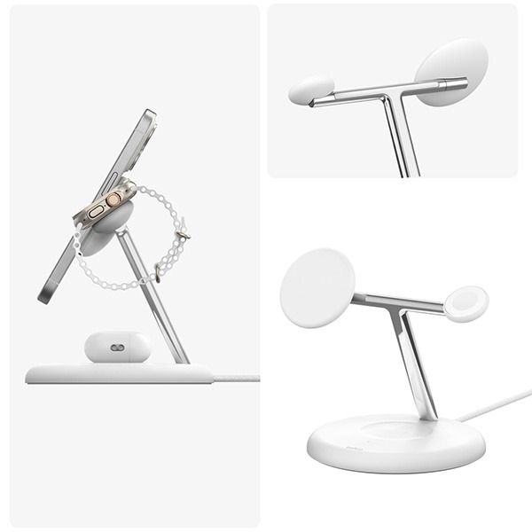 Belkin Magsafe 3 in 1 Boost Charge Pro là một sản phẩm cực kỳ tiện lợi, cho phép người dùng sạc đồng thời iPhone, Apple Watch và AirPods. Với tổng công suất 15W, thiết bị này giúp tiết kiệm thời gian và không gian. Thiết kế hiện đại và sang trọng của nó cũng làm nổi bật không gian sống của bạn.