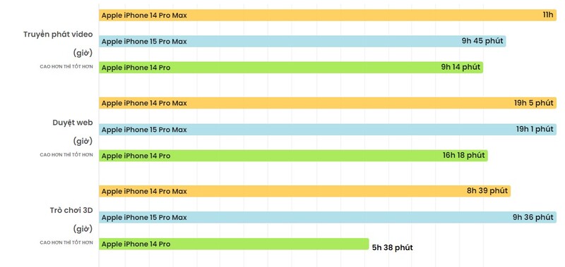 Vì vậy, trong cuộc sống thực, thật khó để đo lường sự khác biệt đó trong các nhiệm vụ chính xác. Nhưng chúng ta có thể nói rằng, trong cuộc sống hàng ngày của chúng ta, iPhone 15 Pro Max cung cấp đủ năng lượng để chúng ta sử dụng ít nhất một ngày rưỡi. Tương tự với 14 Pro.