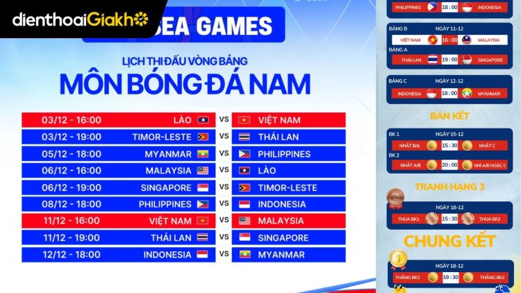 Lịch thi đấu bóng đá nam SEA Games 33 2025 mới nhất