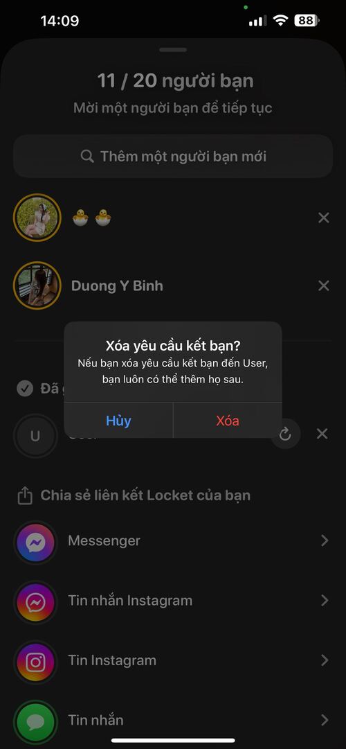 Có thể xóa bạn trên Locket Widget không?