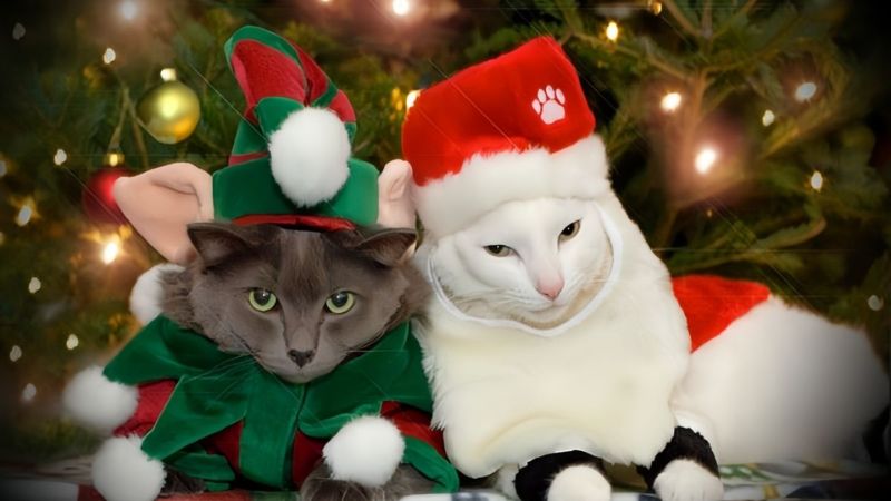 Trong mùa Giáng Sinh, những chú mèo luôn giữ vị trí “ngôi sao” trong thế giới meme. Những bức mèo meme Giáng Sinh với biểu cảm khó đỡ, ngơ ngác, bất mãn hoặc “bất cần đời” khi bị ép đội mũ Noel sẽ khiến bạn cười không ngừng. Chính sự đáng yêu pha lẫn sự lười biếng vốn có của loài mèo tạo nên sức hút đặc biệt.