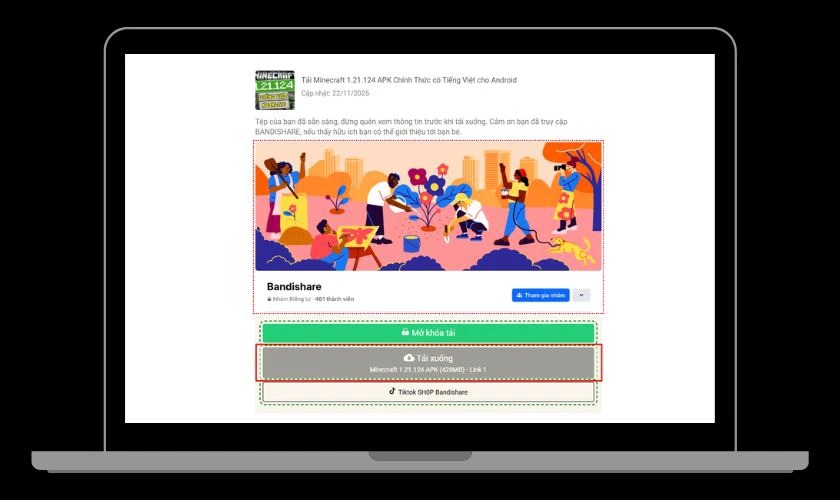- Bước 1: Mở trình duyệt trên Android, truy cập trang tải Minecraft 1.21.124 APK uy tín và nhấn Tải về.