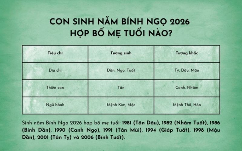 Bố mẹ tuổi nào hợp để sinh con Bính Ngọ 2026?