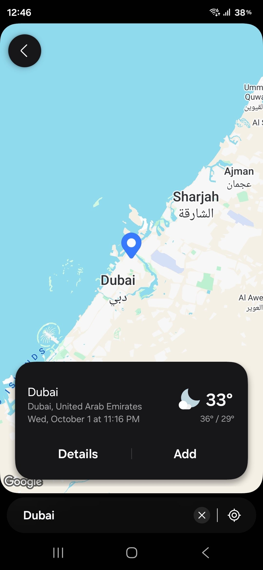 - Ứng dụng Thời tiết: Thanh tìm kiếm được chuyển xuống phía dưới, trong khi tên địa điểm ở đầu trang được làm nổi bật bằng khung hiển thị.