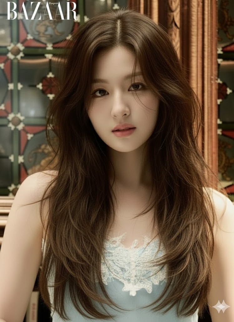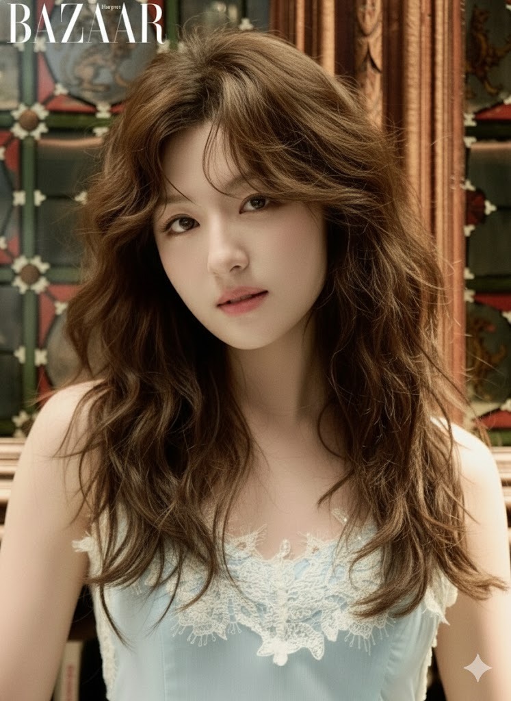 Prompt đổi kiểu tóc Tóc dài uốn sóng lãng mạn: