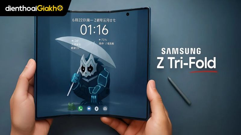 Nếu thông tin này chính xác, , Galaxy Z TriFold sắp ra mắt sẽ trở thành sản phẩm gập ba đầu tiên của Samsung, khác biệt hoàn toàn so với các mẫu gập dạng quyển sách như Galaxy Z Fold 7. Thiết bị được cho là sử dụng hai bản lề, cho phép gập thành ba phần linh hoạt.