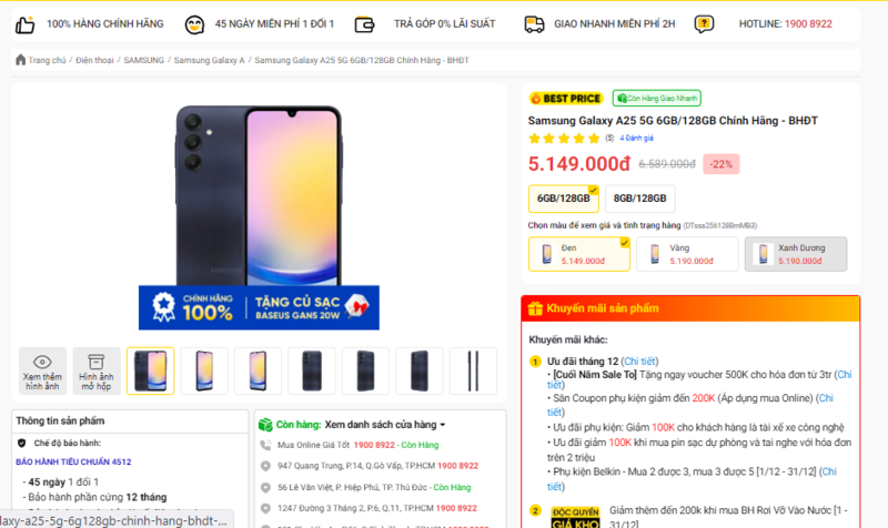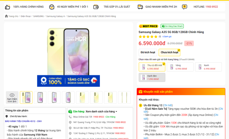 Nếu bạn đang tìm kiếm nơi mua Samsung A35 hoặc A25 với giá cả hợp lý và uy tín tại TP. HCM, Điện Thoại Giá Kho là một trong những lựa chọn hàng đầu. Đây là cửa hàng nổi tiếng với chính sách giá cạnh tranh và nhiều chương trình khuyến mãi hấp dẫn.