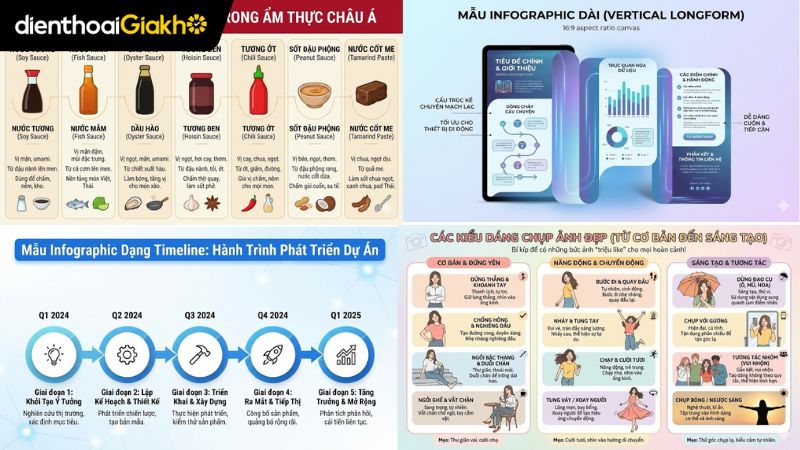 Dùng cho các chủ đề cần nhiều mục hoặc giải thích chi tiết. Nano Banana Pro tạo nền, chia nhóm thông tin và giữ bố cục sạch sẽ dù chứa nhiều nội dung.