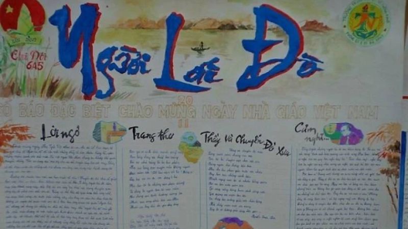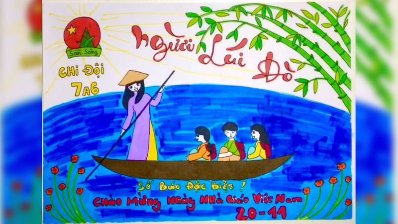 Chủ đề “Người lái đò” tượng trưng cho thầy cô âm thầm chèo lái, đưa học trò đến bờ tri thức. Mẫu tập san này thường sử dụng hình ảnh con đò, dòng sông, cầu và gam màu trầm gợi hoài niệm. Nhờ ý nghĩa sâu sắc, gần gũi và giàu tính nhân văn, phong cách này dễ tạo cảm xúc, ghi điểm với ban giám khảo và thường đạt thành tích cao.