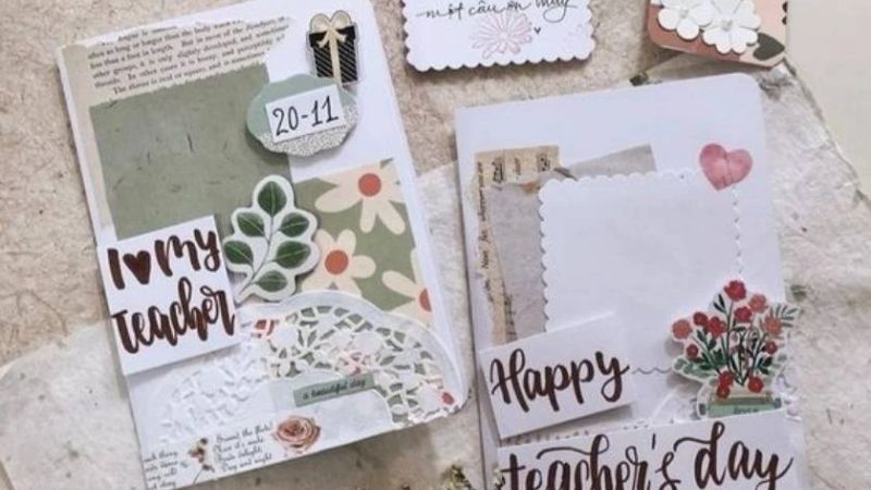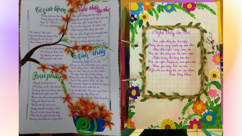 - Bước 5: Viết lời chúc đến thầy cô. Hoàn thiện bằng viền trang trí, ảnh lớp, hoa khô…