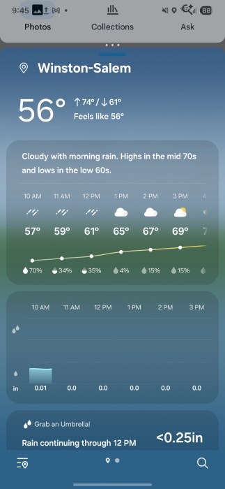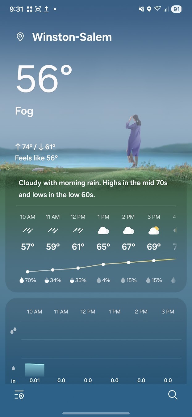 Tính năng ứng dụng Thời tiết mặc định trên One UI 8 được cải tiến với hình ảnh mới mô phỏng các điều kiện thời tiết chân thực hơn. Ngoài ra, nhiều thành phần UI trong ứng dụng cũng được thiết kế trong suốt hơn, mang đến giao diện nhẹ nhàng và hiện đại.