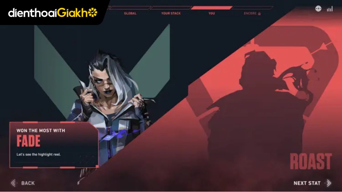 VALORANT Flashback chia dữ liệu của bạn thành bốn nhóm thống kê chính và một phần Encore cuối, mỗi phần tập trung vào một khía cạnh khác nhau trong hành trình thi đấu.