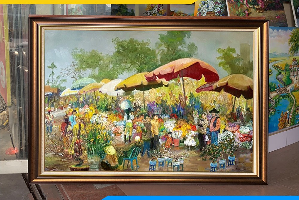 Những bức tranh này có thể mô tả cảnh mọi người mua sắm, những gian hàng đầy ắp thực phẩm, hoa quả và các món ăn truyền thống. Thông qua màu sắc và hình ảnh, bạn có thể tái hiện lại sự nhộn nhịp, sôi động của không khí chợ Tết, mang đến cho người xem cảm giác ấm áp và gần gũi.