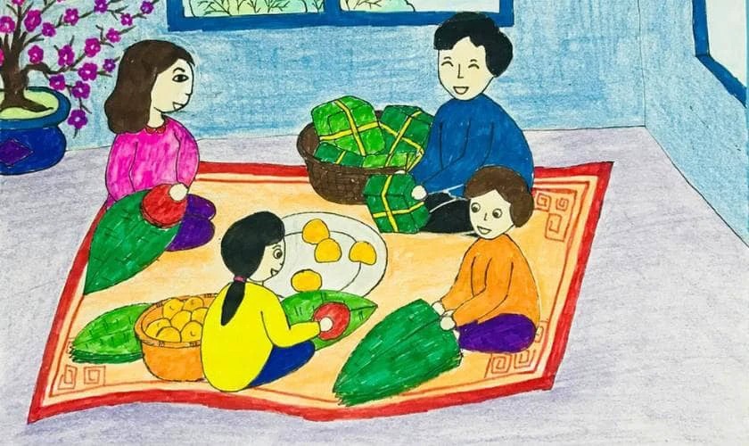 Vẽ tranh về gia đình trong ngày Tết