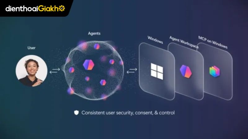 Trong bản cập nhật Windows 11, Microsoft tích hợp các tác nhân AI, bao gồm Microsoft 365 Copilot và các giải pháp của bên thứ ba, ngay trên thanh tác vụ. Những tác nhân này có thể xử lý các công việc nền như nghiên cứu dữ liệu hoặc chuẩn bị tài liệu, giúp người dùng tập trung vào các nhiệm vụ quan trọng như họp hay hoàn thành dự án.