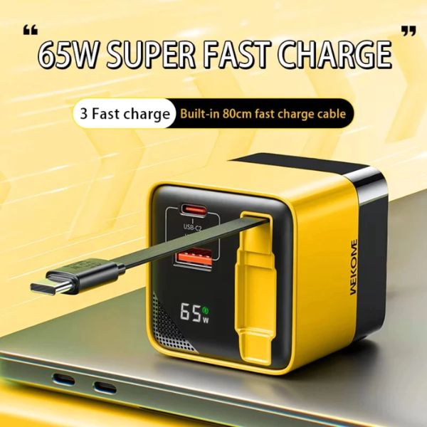 WEKOME WP-U39 – Đỉnh cao tiện lợi với cáp dây rút và sức mạnh Công Nghệ GaN 65W
